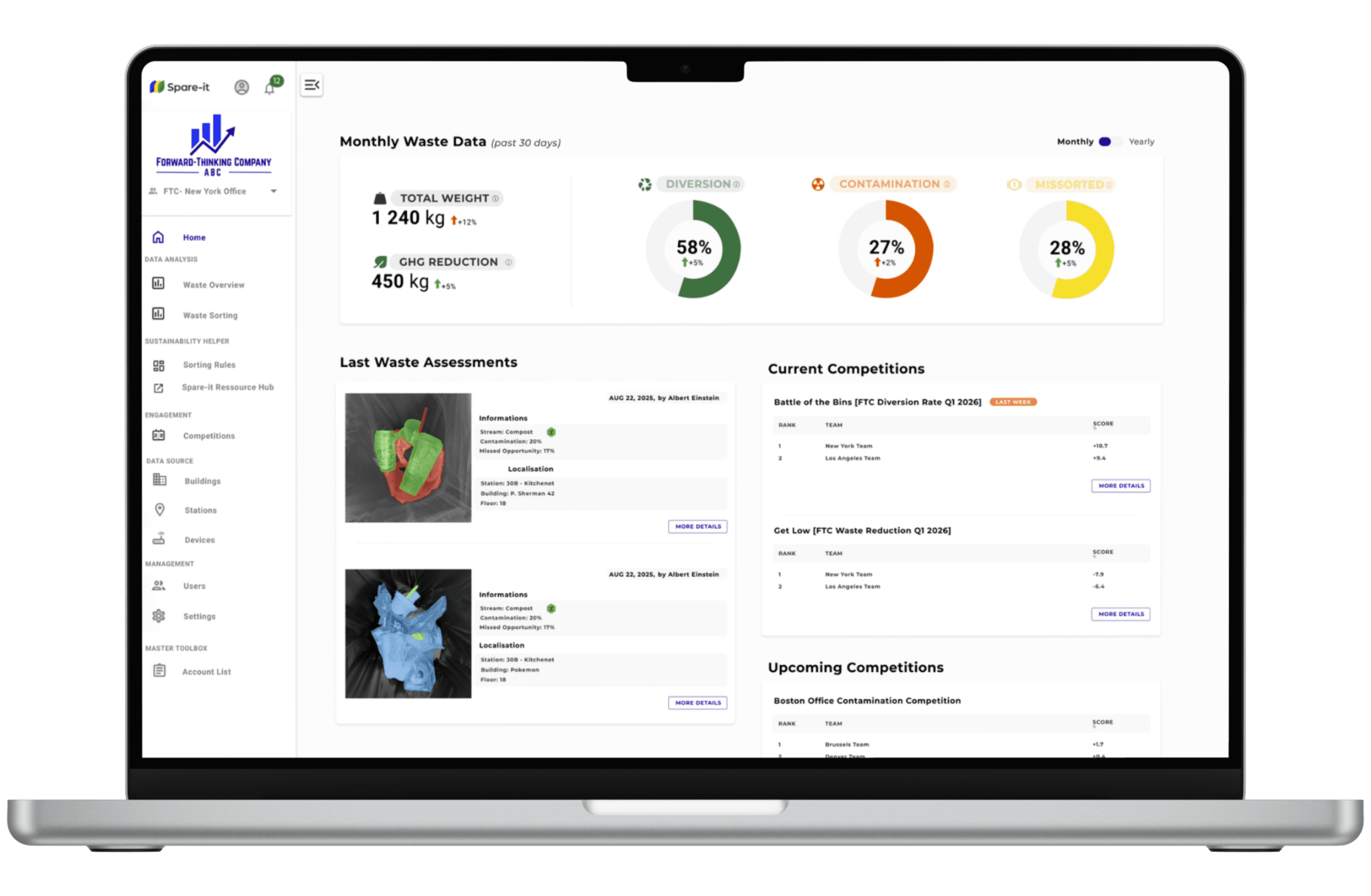 Spare-it encourages employee engagement through interactive leaderboards, team competitions, and sustainability challenges that make waste reduction a collective effort.