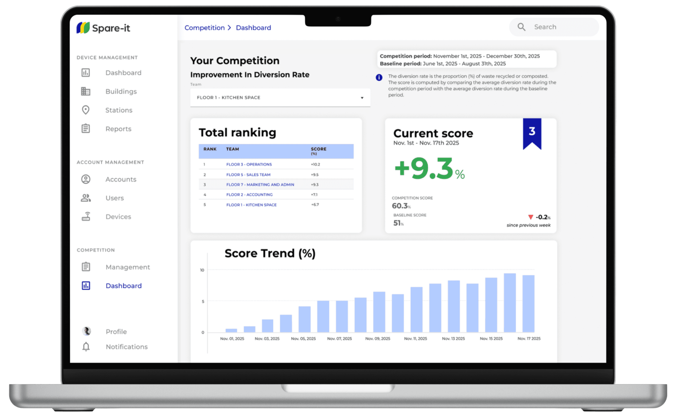 Spare-it encourages employee engagement through interactive leaderboards, team competitions, and sustainability challenges that make waste reduction a collective effort.